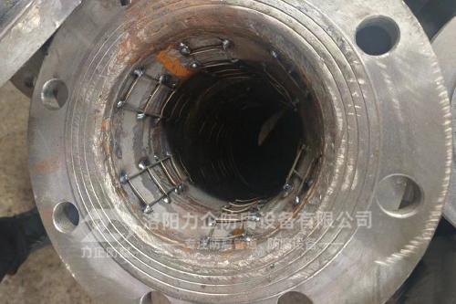 在有負壓的工況下,使用鋼襯四氟管需要采用模壓工藝制作,為了避免在有負壓工況下使用出現狀況,在鋼襯四氟管內壁可加鋼絲網,增加其內襯的牢固性。下面我們來看一下生產過程中的鋼襯四氟管是什么樣子的: