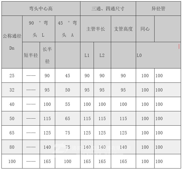鋼襯四氟彎頭及其它配件常用規(guī)格參數: